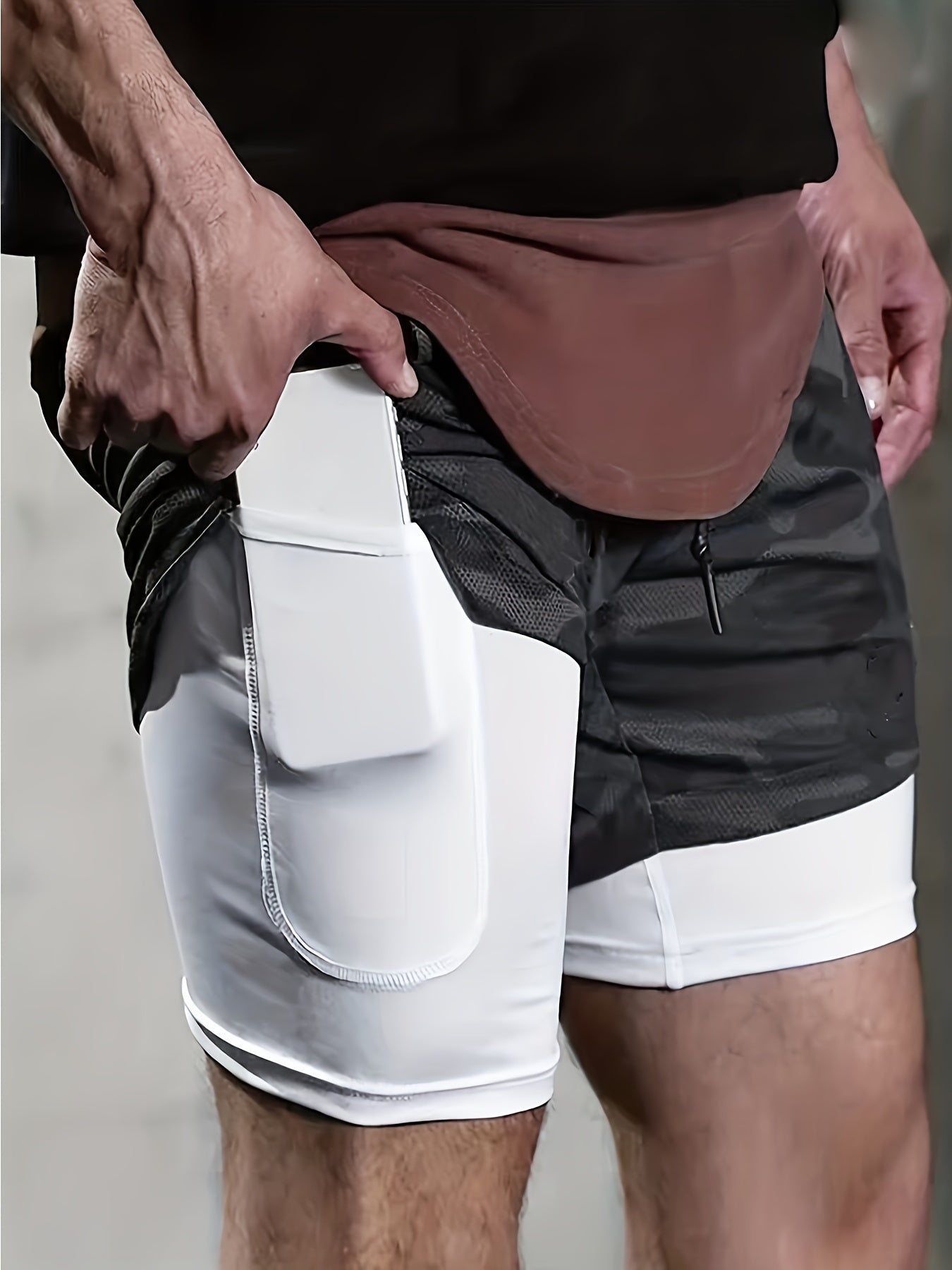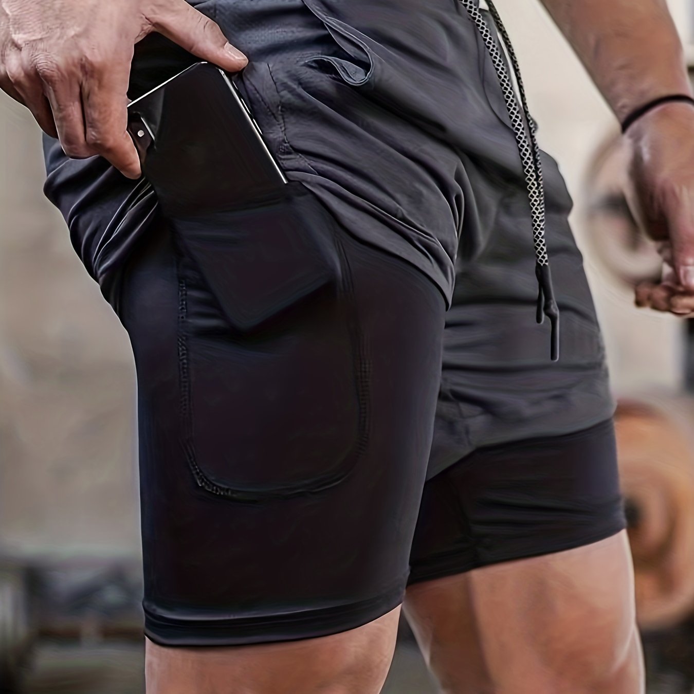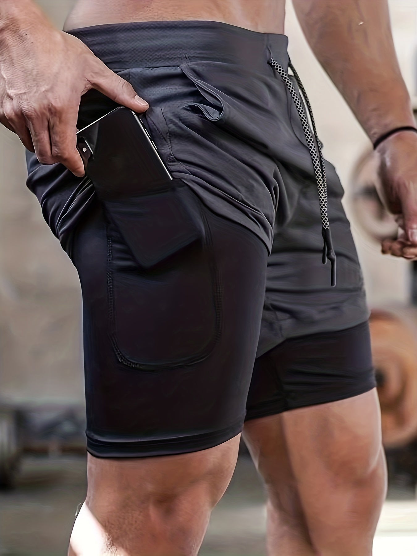 Short homme mi-long extensible 2 en 1 double couche - Poche intérieure zippée, idéal pour l'entraînement en salle de sport