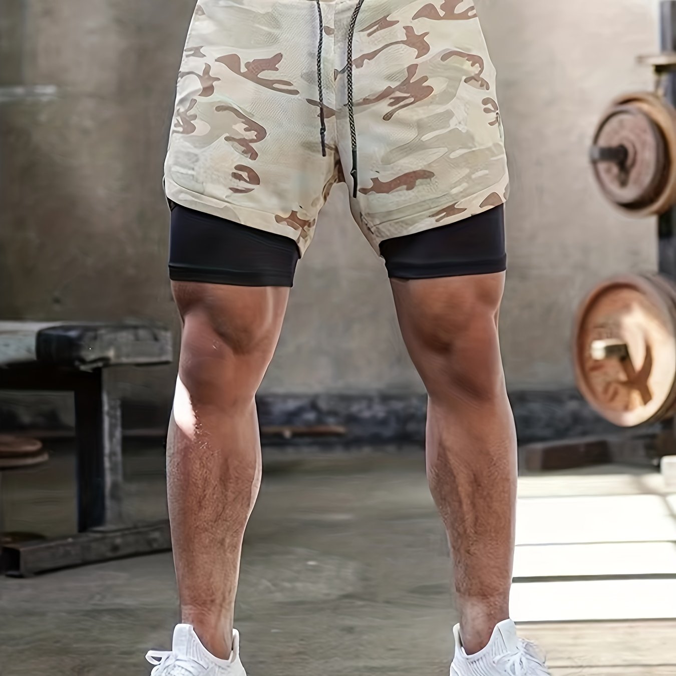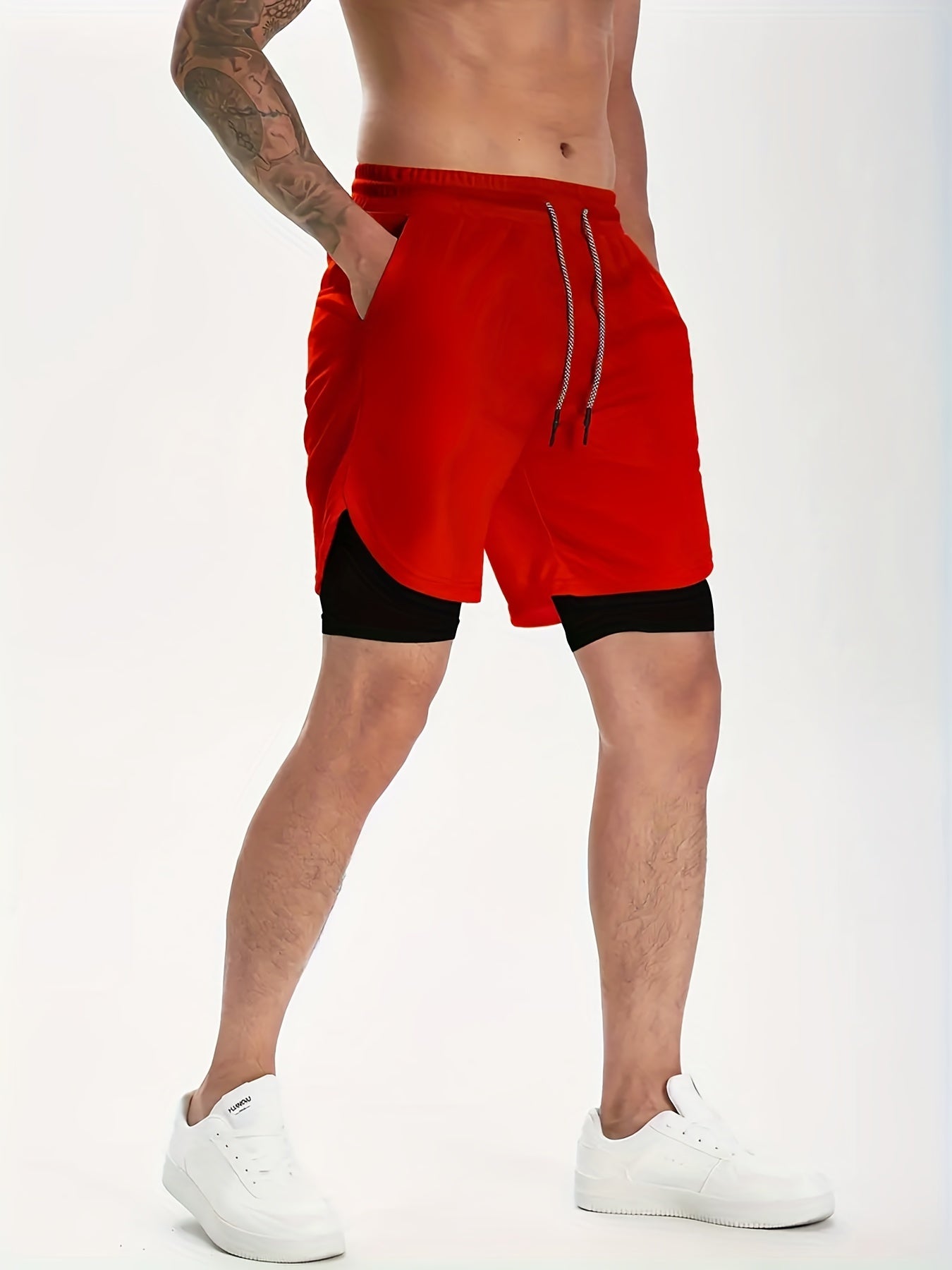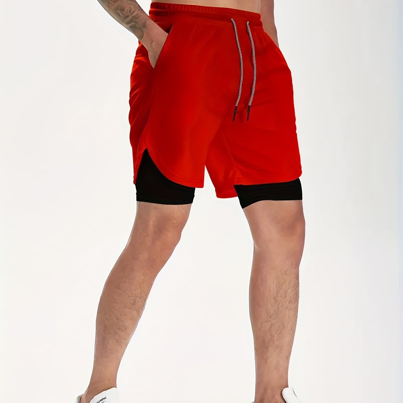 Short homme mi-long extensible 2 en 1 double couche - Poche intérieure zippée, idéal pour l'entraînement en salle de sport